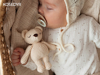 Alle produkter er laget av økologisk bomull. Mykt mot hud, naturlig hypoallergen og trygt fra første berøring. Vi velger materialer like nøye som vi velger form og farge. Ingenting er tilfeldig.